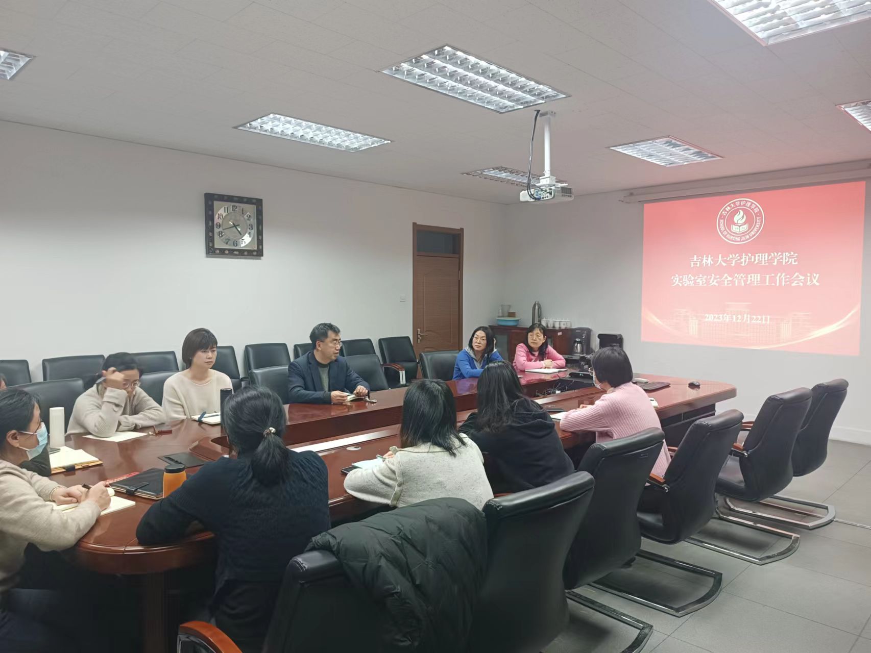 李峰副院长在会议中指出,要认真贯彻“安全第一,以防为主”的方针,本着谁管理、谁负责的原则,进一步压实各方责任、强化安全措施。落实实验室准入制度,禁止无关人员进入实验室,非使用状态下的仪器设备应及时关机、断电(如烘箱、反应釜等危险仪器设备),坚决杜绝实验室无人值守运行等问题发生。要重点加强危险化学品和危险气体等重要危险源的管控、管理,严格按照相关规定操作、处置。结合《高等学校实验室安全检查项目表(2023)》,学校2023年秋季学期初实验室安全检查中发现安全隐患的整改落实情况,对发现的安全隐患及时整改。