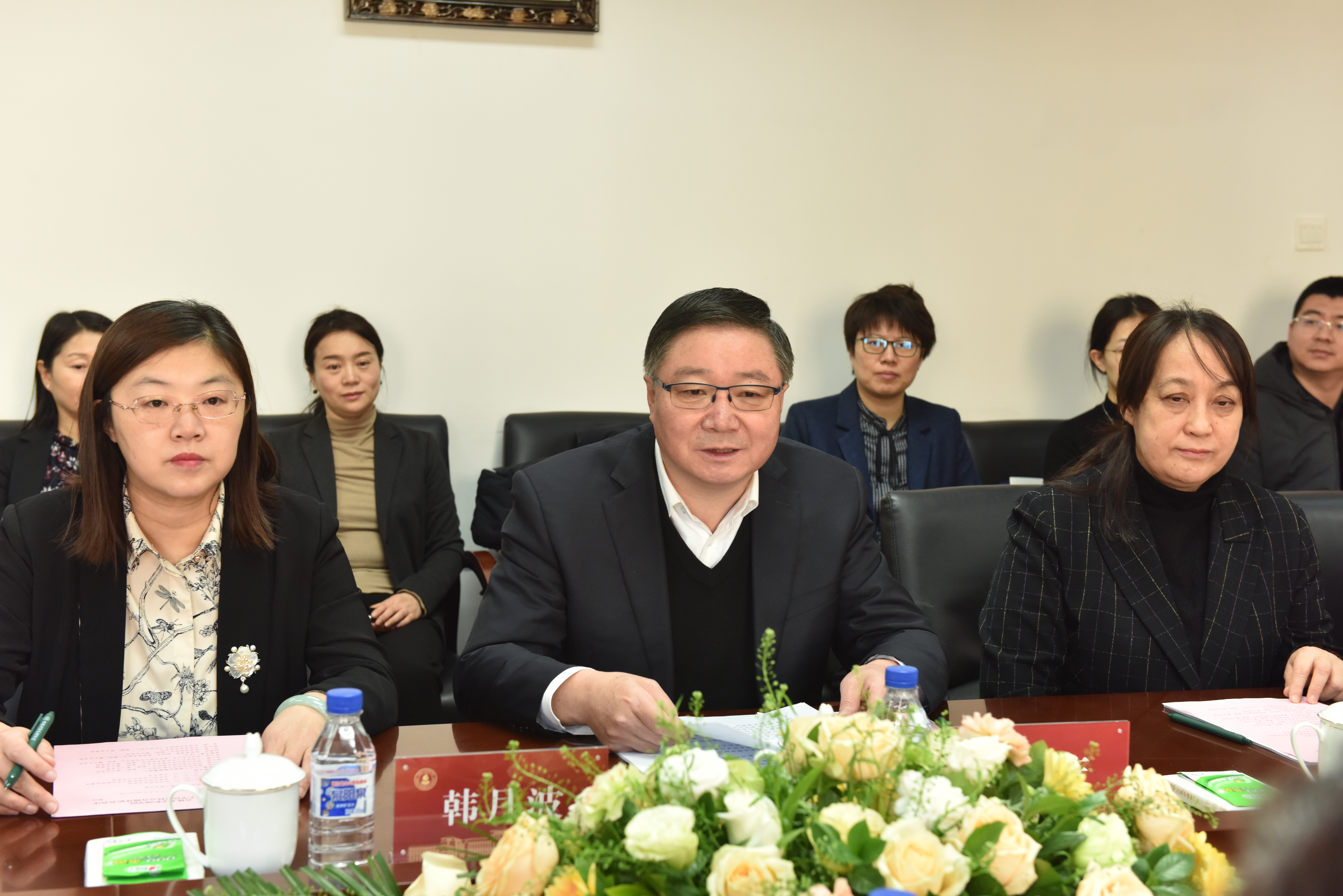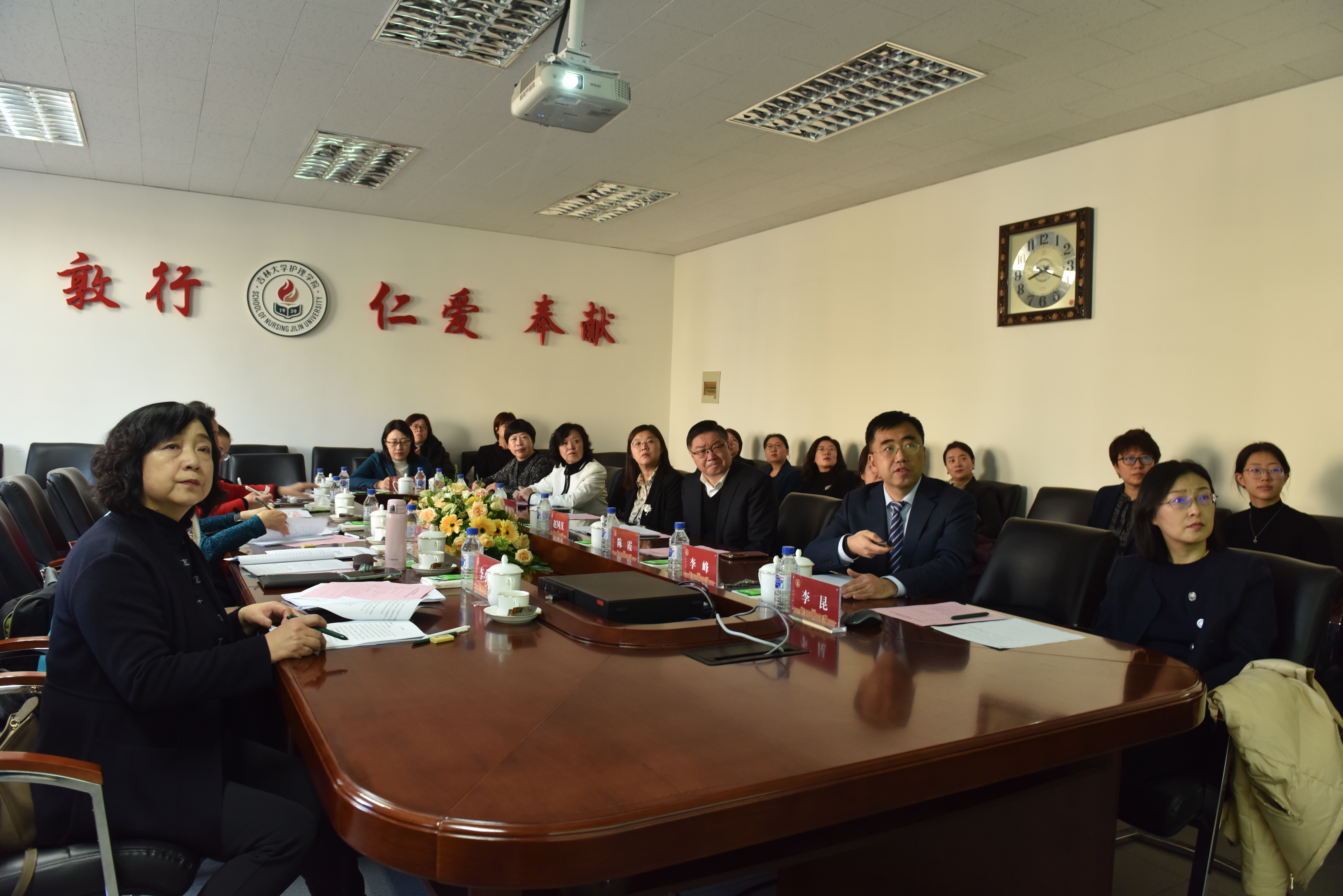 党委书记韩月波,副院长李峰,党委副书记兼副院长、纪委书记葛宗梅,学院学科学位评定分委员会主席陈立,院长助理彭歆、张雪妍,白求恩第二临床医学院副院长殷艳玲,口腔医学院院长助理刘东玲,av解说