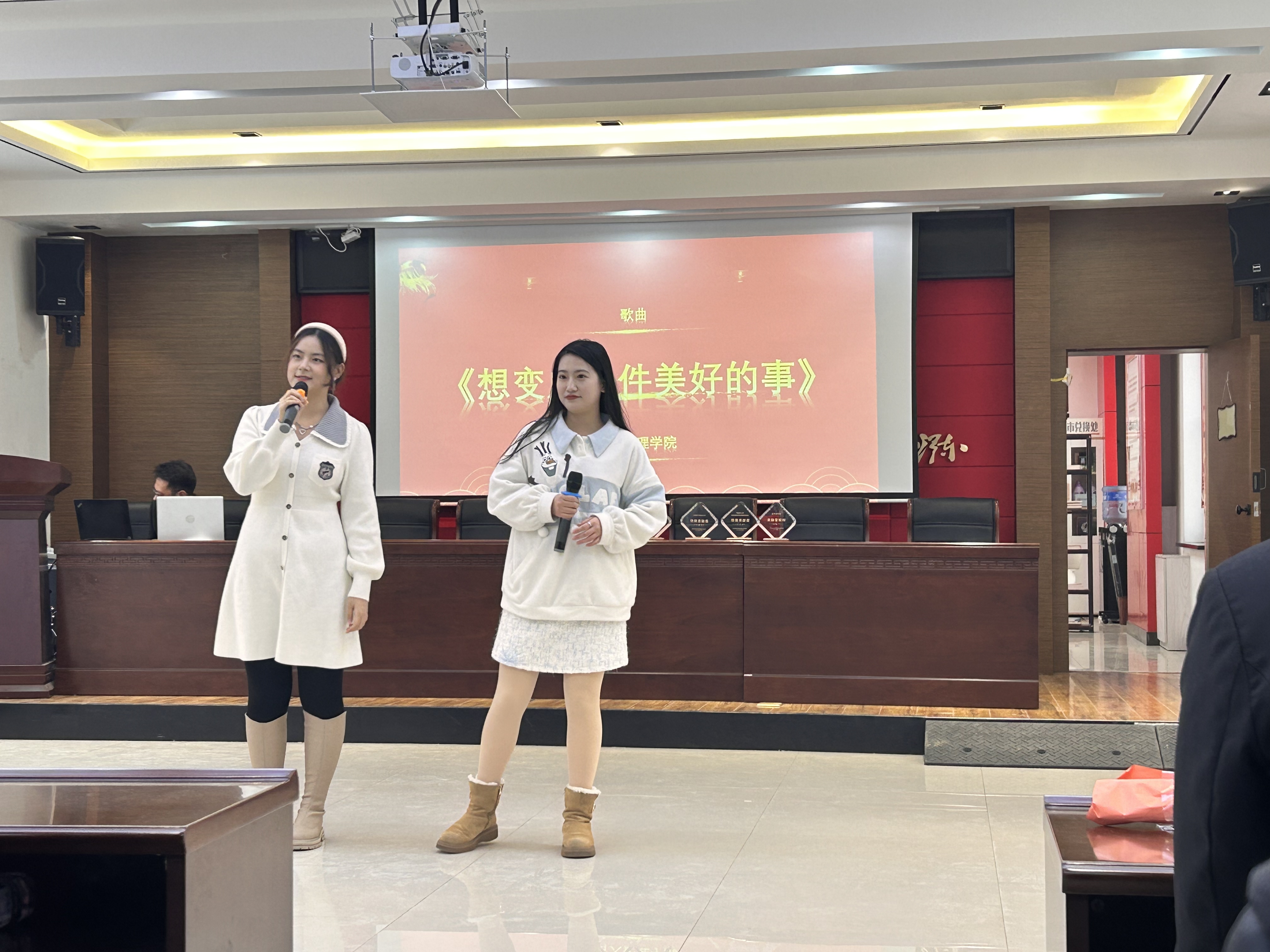 学生代表为大家带来歌曲《想变成一件美好的事》。