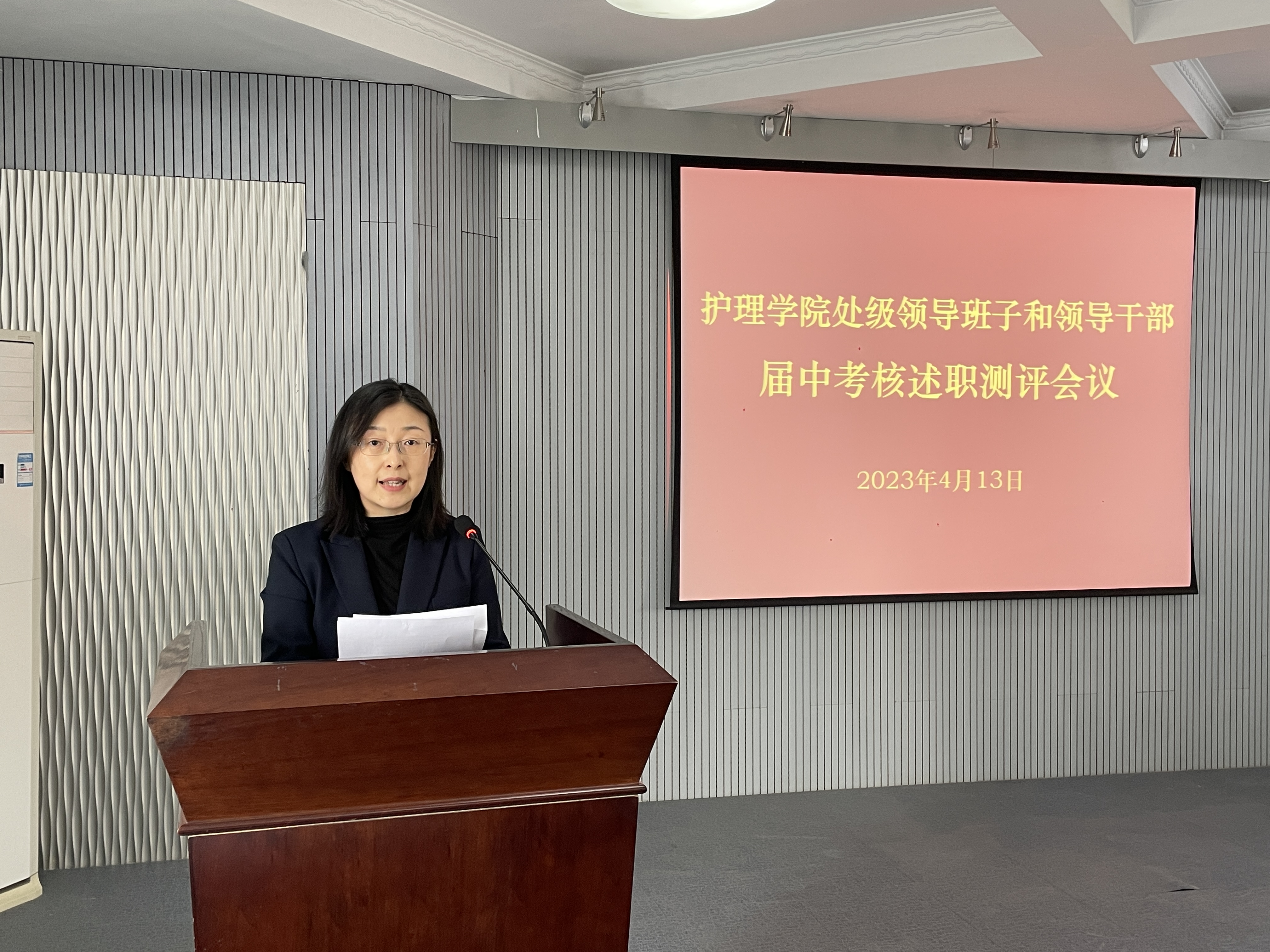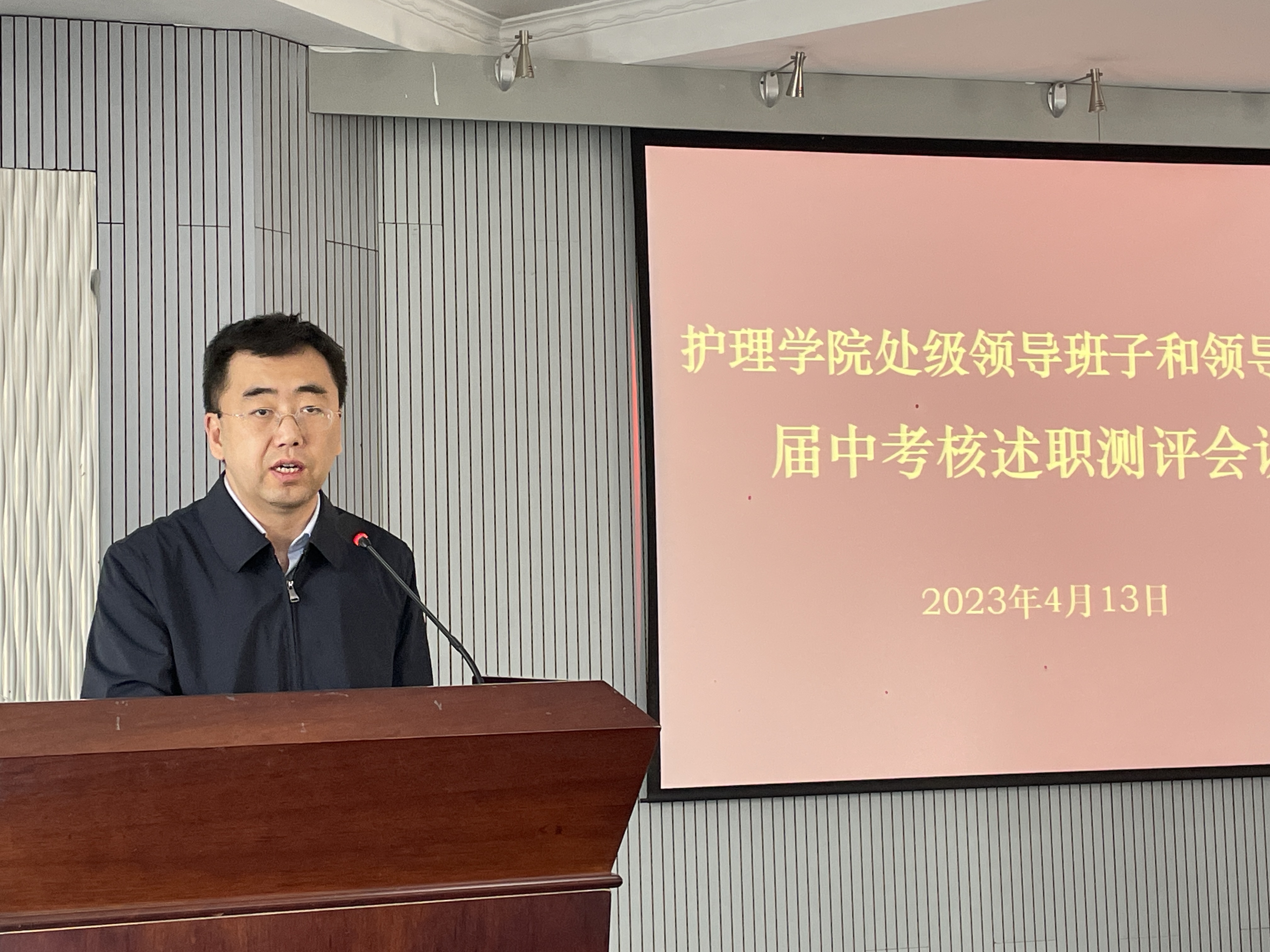 副院长李峰从加强理论学习,不断提升执政管理能力、完善学科建设,推动学院新医科创新发展、创新科研思维,深化学科融合,促进成果产出、狠抓学风建设,深化研究生管理工作等方面工作进行述职。