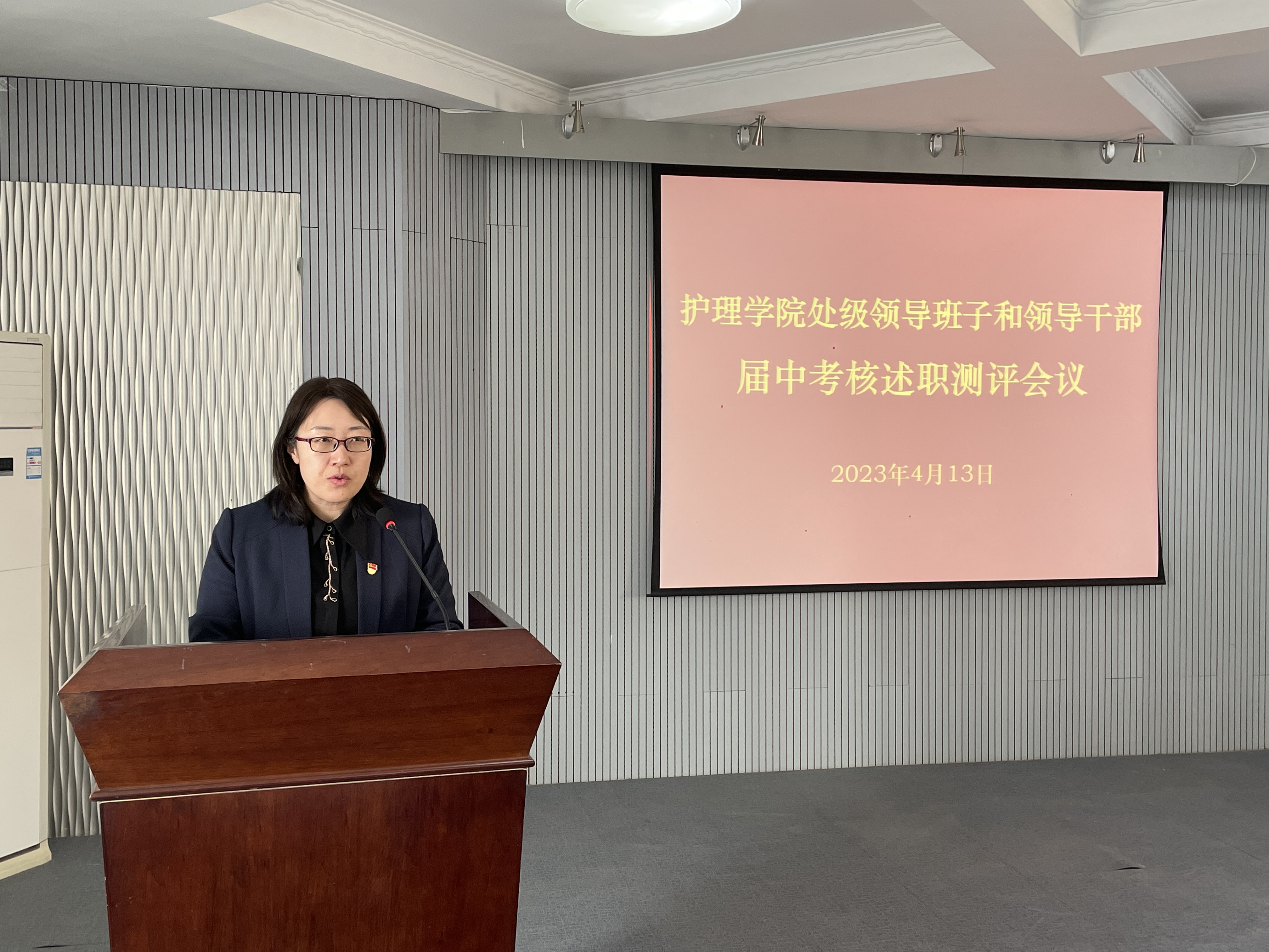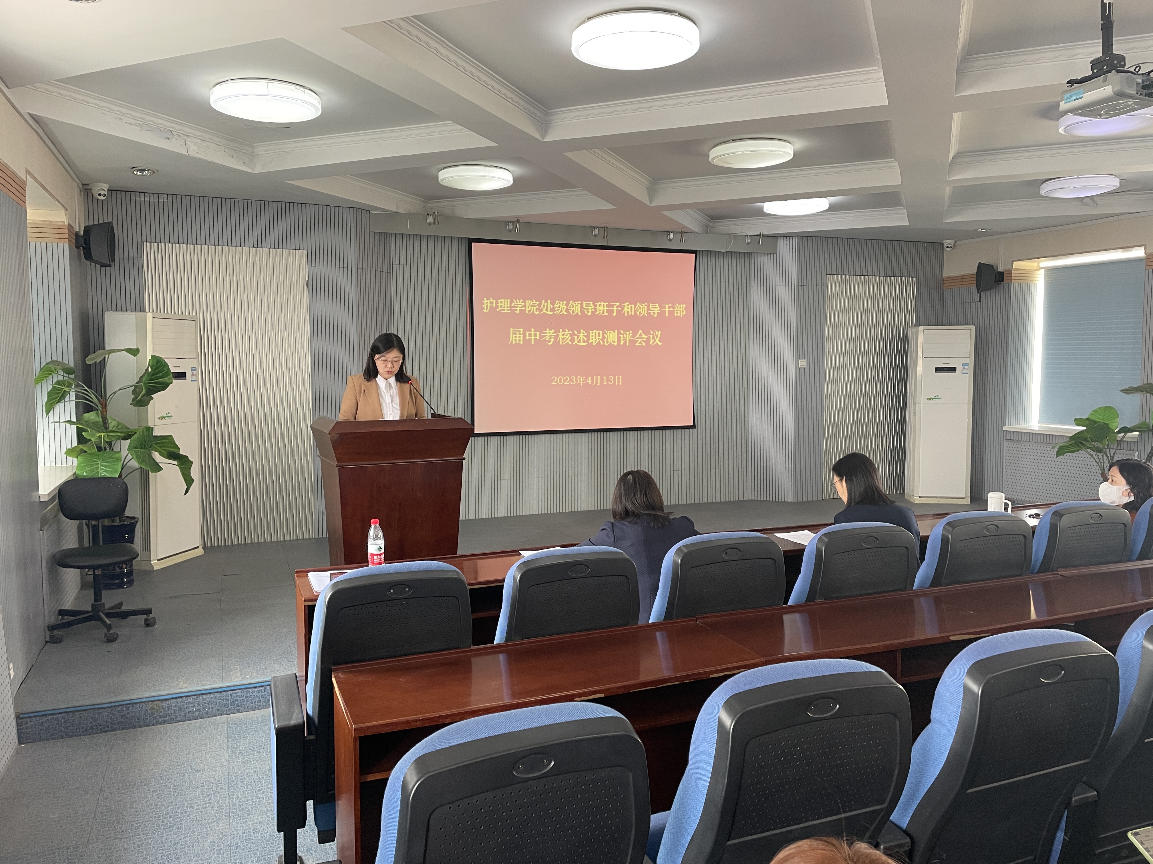 于4月13日在六楼报告厅召开处级领导班子和领导干部届中考核述职测评会议,全体教职工参加会议。会议由学院党委书记韩月波主持。