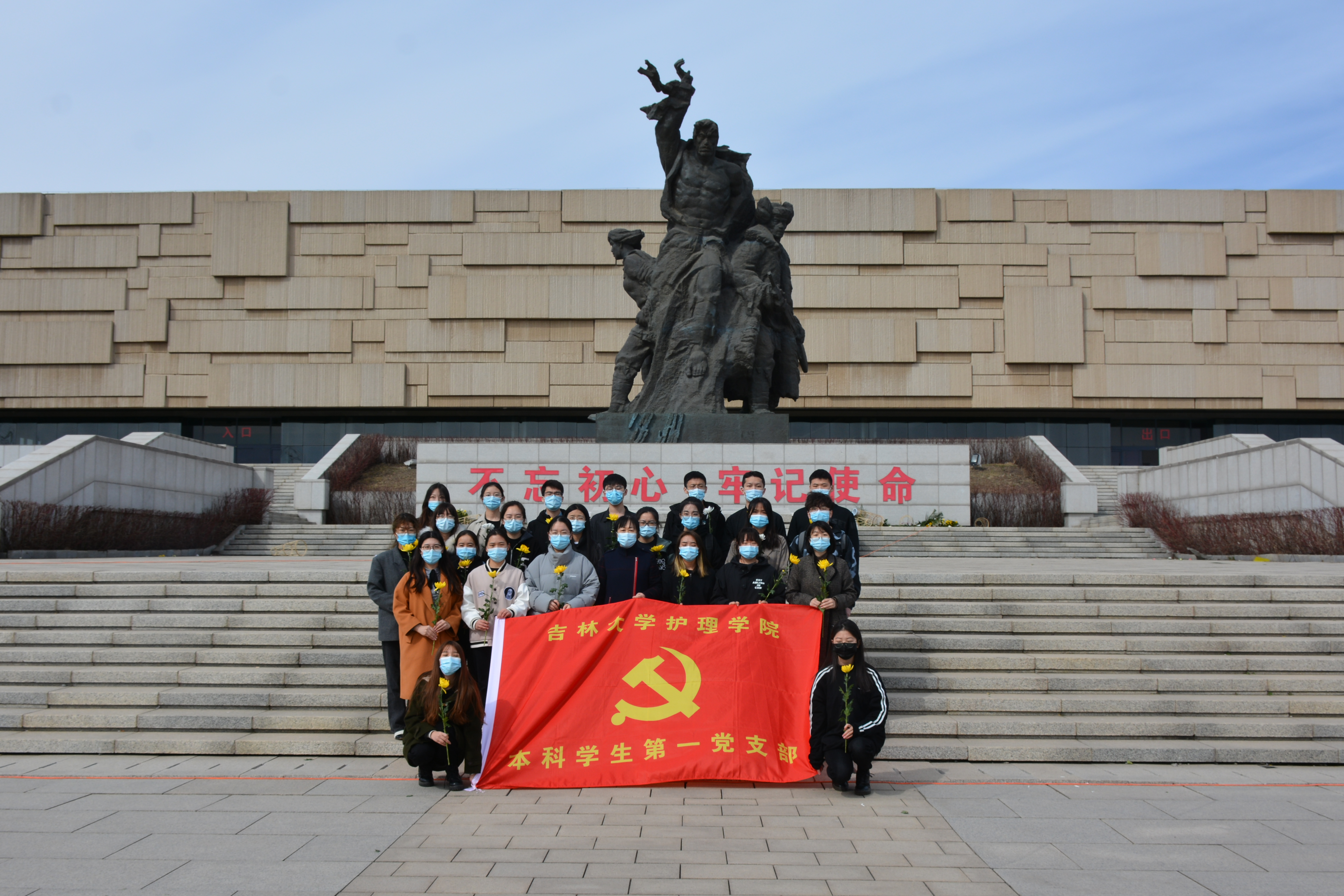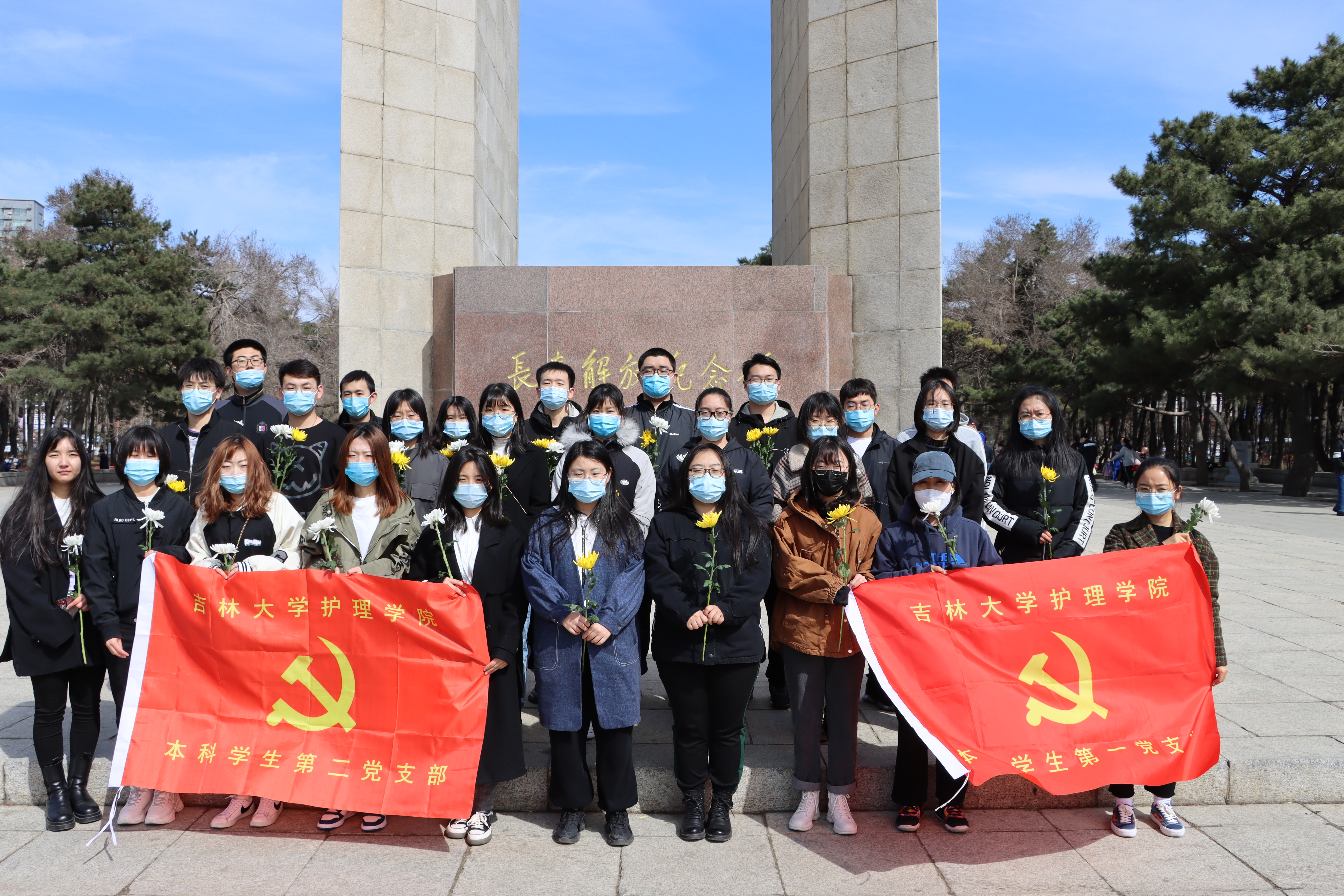 部分学生党员、入党积极分子、共青团员,在长春市烈士陵园开展了以“折菊遥寄,丰碑长存”为主题的祭扫活动,祭奠长眠于此的革命烈士。同学们在烈士陵园纪念馆内参观重温了烈士事迹,礼敬先烈前辈。参观完毕后,大家在陵园的纪念碑前向烈士默哀,表达自己的敬意并依次上前为烈士献花。随后,全体党员集体重温入党誓词。