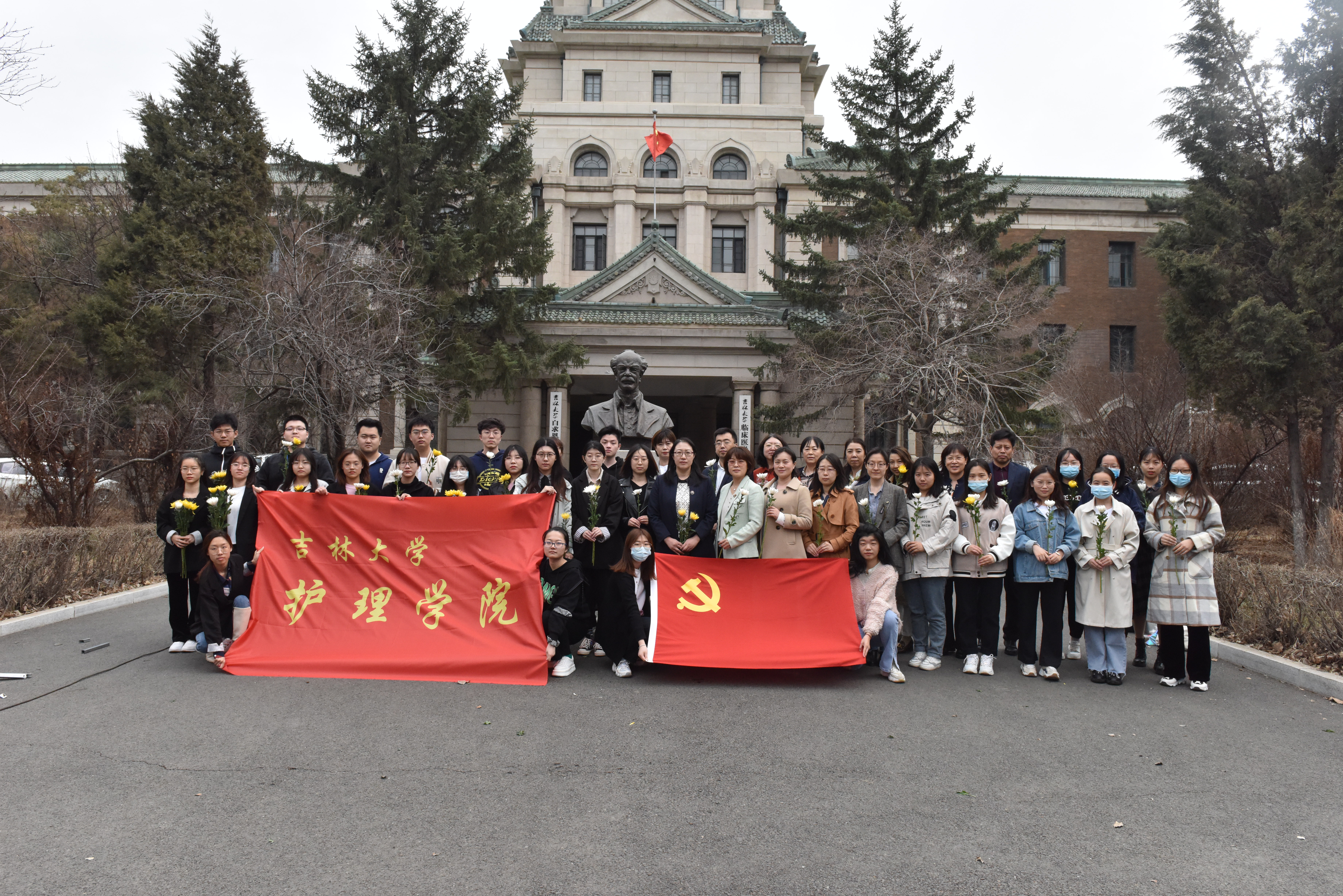 全体教职工党员及学生党员代表,开展“缅怀先烈事迹,传承白求恩精神”为主题的清明节主题党日活动。在庄严的白求恩像前,全体党员通过默哀、敬献鲜花的方式,表达了对国际共产主义战士白求恩同志的哀思。