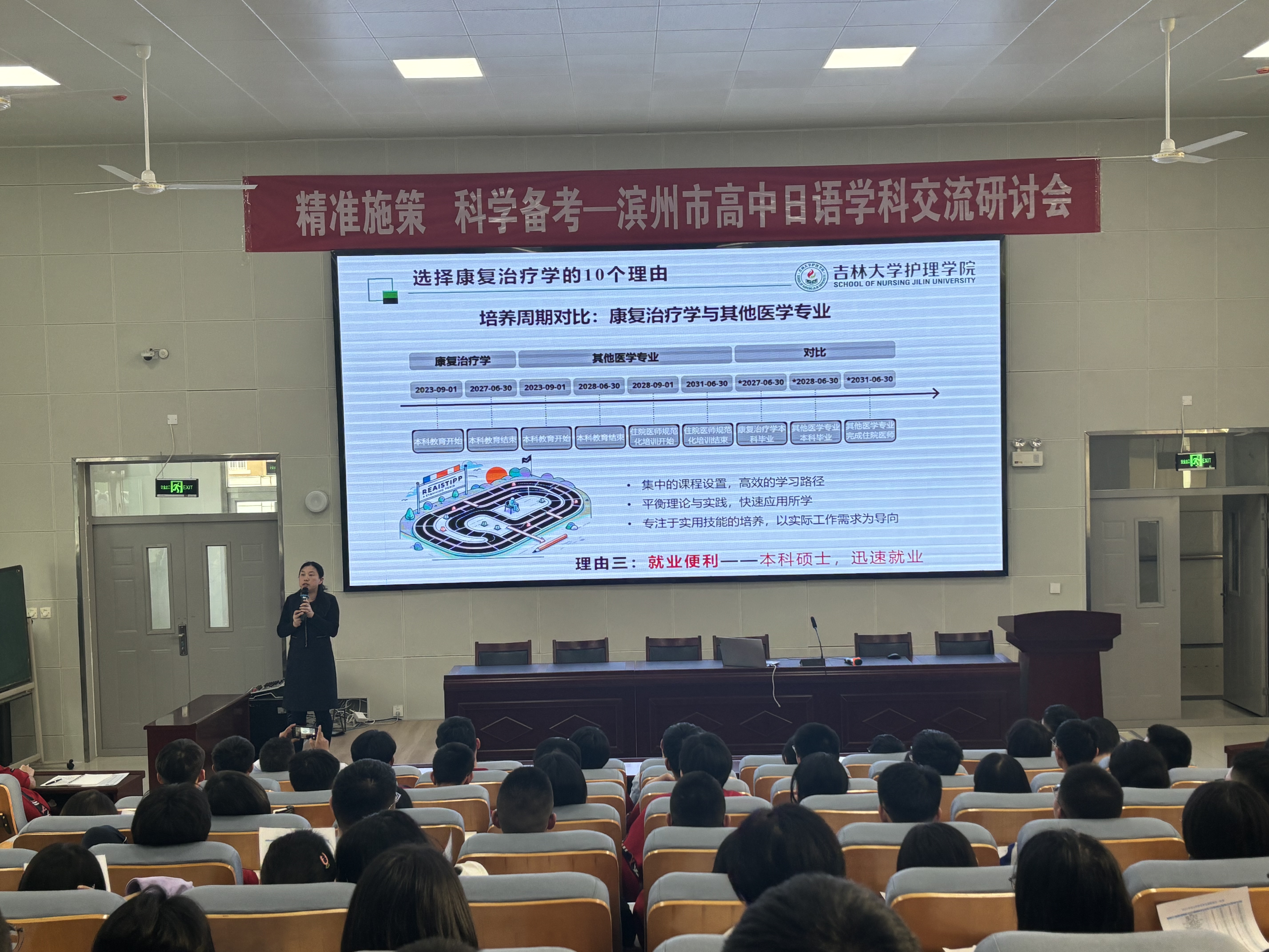 的建设情况,并作了题为《康复:让生命更加精彩》的科普报告,以康复治疗学专业为例,通过生动的案例和丰富的数据,列举报考康复治疗学的“十大理由”,让同学们对康复治疗学专业有了更加全面和深入的了解。