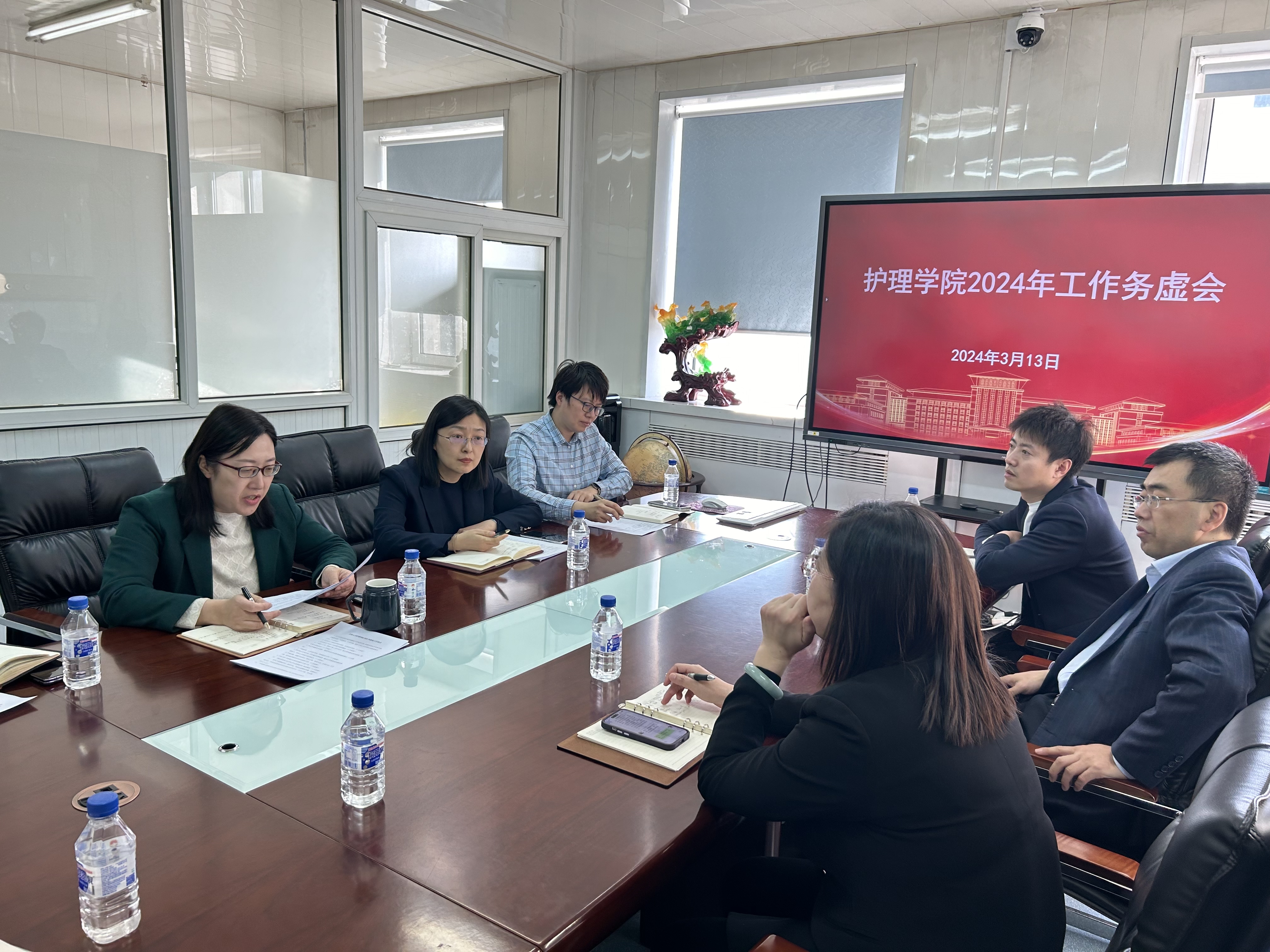 副院长李峰在分析总结2023年工作完成情况的基础上,紧紧围绕学校事业发展规划,对2024年加强和提升专业建设和学科建设两个方面提出展望。专业建设上,全院上下要同心同力,完善人才培养的制度体系,提升师资队伍的能力水平,积极迎接护理和医学技术两个专业的专业建设审核性评估和稳固国家一流专业建设点。在学科建设上,面对新一轮学科评估,要夯实基础、迎难而上,找到解决问题的坐标和方向。要通过加强国际合作,拓宽人才引进的渠道和视野,促进人才引进工作落地,实现突破。通过国内校际间交流合作,通过与临床的协同发展,促进科学研究水平的进一步提升。通过学科交叉,通过校企合作,促进科研成果转化,孵育国家级和省级重点项目;同时与企事业单位的合作,扩大社会服务工作的覆盖面,造福地方,服务社会。