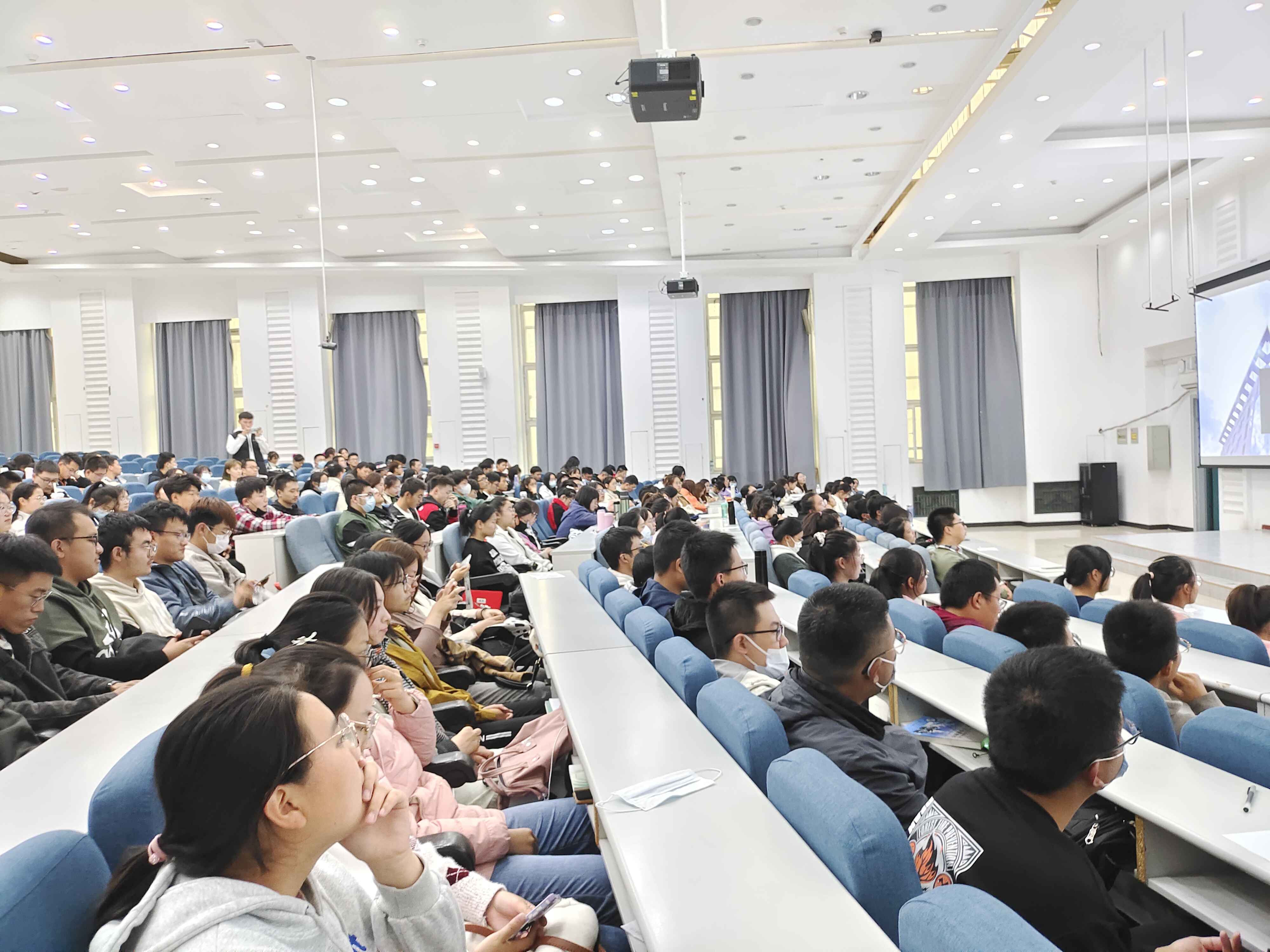 全体2021级本科生于经信教学楼F区5阶教室参加av解说