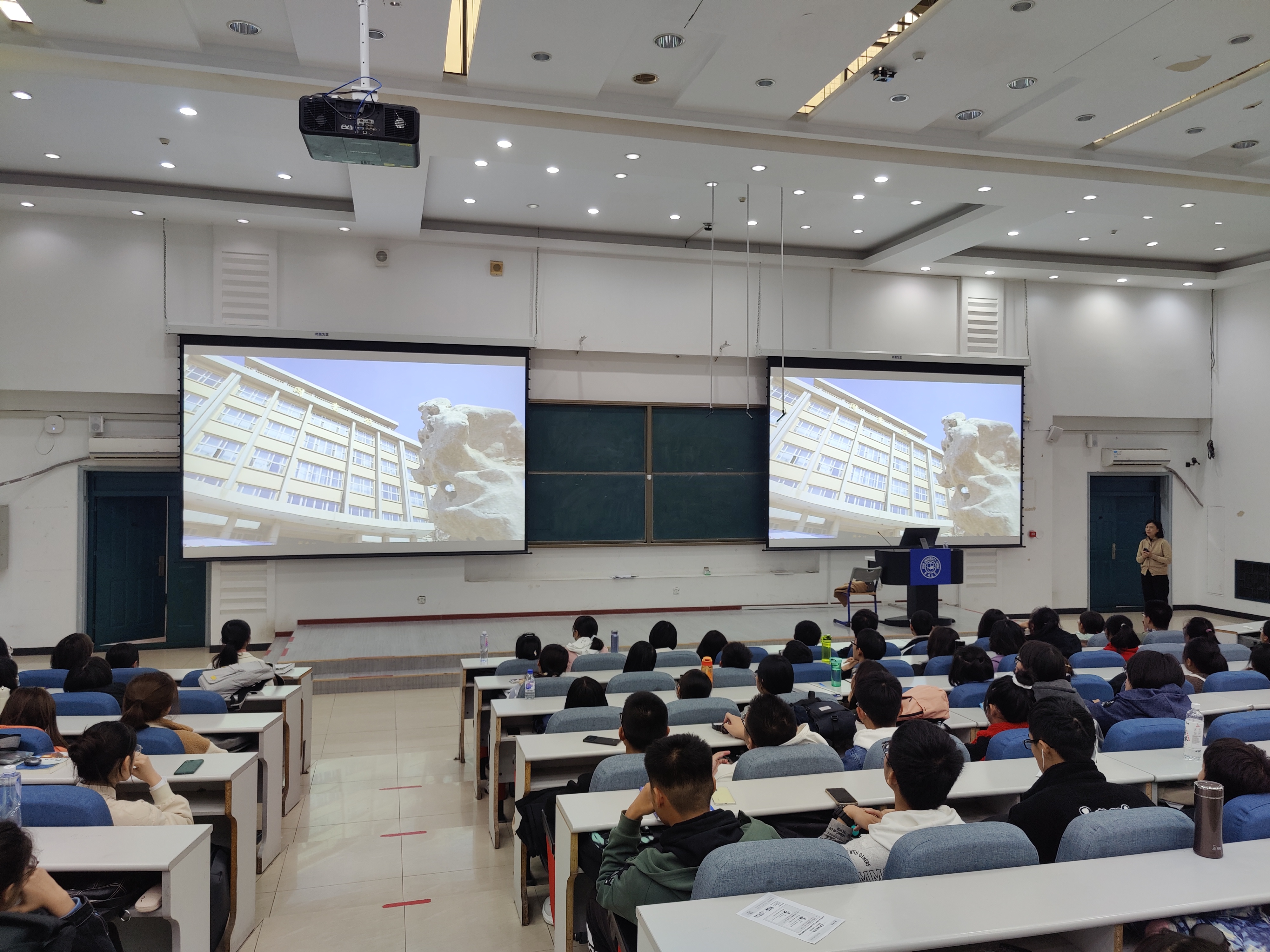 全体2021级本科生于经信教学楼F区5阶教室参加av解说